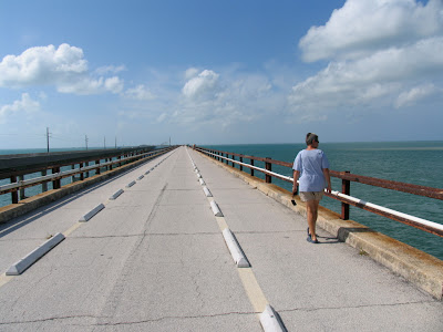 We went walking on Marathon Bridge - part of the Seven Mile Bridge. This walkway is a leftover from the Flagler Railroad that was built 100 years ago to connect Miami and Key West. (Now the Overseas Highway is the connector and was created using much of the old railroad bed. This is the very end of US Route 1, and of course the famous Mile Marker 0 is right in the middle of Key West.) The walkway is also part of the Greenway - linking cities Florida to Maine, @greenway.org.
